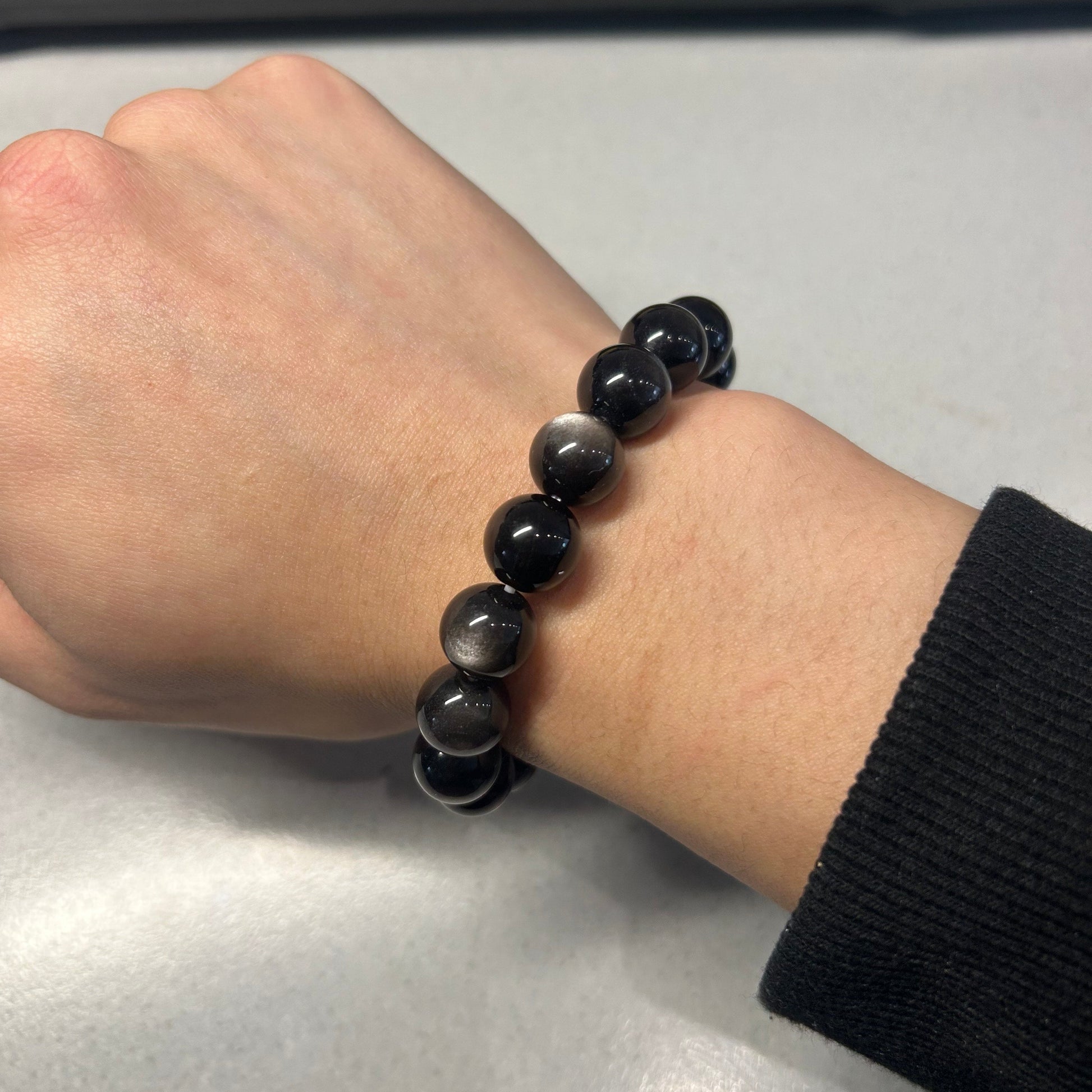 The Midnight Cat’s Eye Guardian Bracelet is crafted from deep black Cat’s Eye stones, known for their striking light band that moves like a cat’s gaze. Traditionally, Cat’s Eye is regarded as a powerful protection stone, helping to block negativity, ward off ill intentions and create an energetic shield around the wearer.